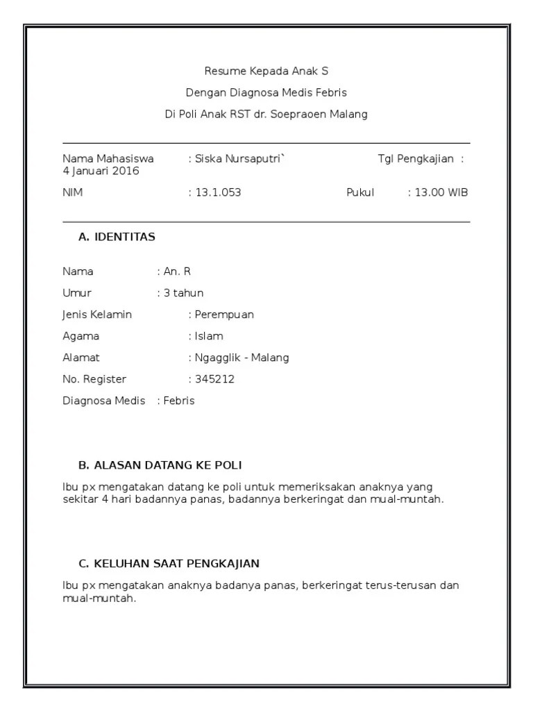 Ibu nur afi darti, s.kp, ns, m.kep selaku ketua program studi diii. Renpra asuhan keperawatan komunitas di rw 05 kelurahan kemiri muka, beji, depok n o. Masalah pada studi kasus ini dibatasi pada asuhan keperawatan keluarga dengan defisit pengetahuan pada klien hipertensi di desa sidomulyo deket. Kasus terkonfirmasi laboratorium, tanda dan gejala khas. Untuk mengetahui asuhan keperawatan komunitas pada lansia.